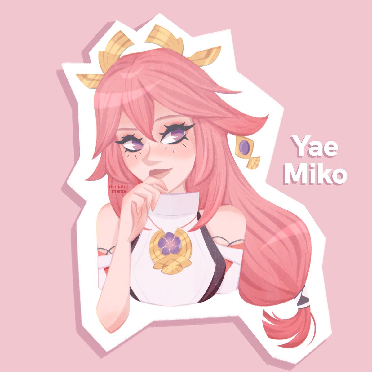 4/6 sixfanarts pink hair 🌸🌷💕 esperando el banner de yae mikoo 😭 #YaeMiko #GenshinImpact #artistsontwitter #fanart