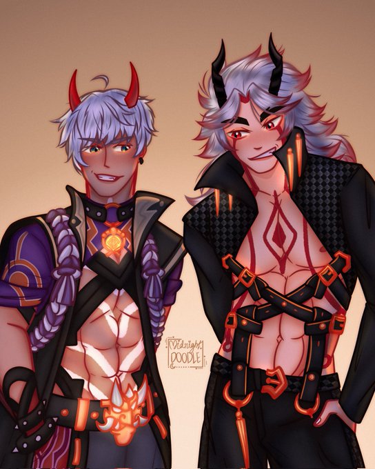 Is it wrong to simp on your own art 😳💖😳💖 pls you two come home 😤✨ • #obeymefanart #obeymemammon #obeymeshallwedate #genshinimpactfanart #Aratakiitto #genshinimpact