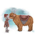 D&d character commission! A Goliath barbarian bonding with her highland cow steed 💜 I am 100% stealing that mount idea for my next character. #dungeonsanddragons #DnD #DnDcharacter #dndart #commissionsopen #Commission