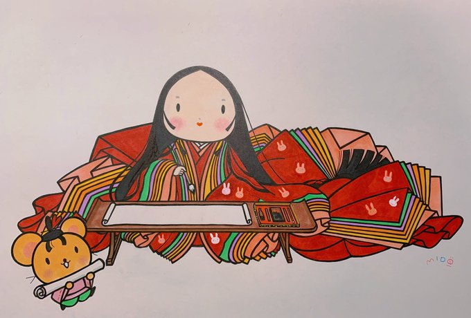 今年あった出来事を思い出しながらイラストを描いています💖 #京都 #イラストレーター #かわいい #古典 #紫式部 #十二単衣 #イラスト #イラストレーション #絵 #illustrator #illustration #kyoto #japan