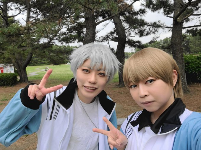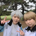 9日アコスタ! 🎾ジローちゃんでいます🐏 髪色はまだ迷ってるので金髪と茶髪どっちかは未定! 丸井くんと一緒にいます🐏🎈 丸井くん→真琴さん@makoto512_cos #アコスタ池袋