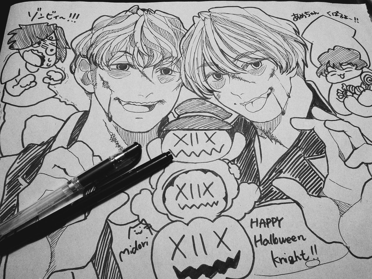 月末恒例、ちぎったカレンダー裏に落書き。 【ハピハロ!!】
