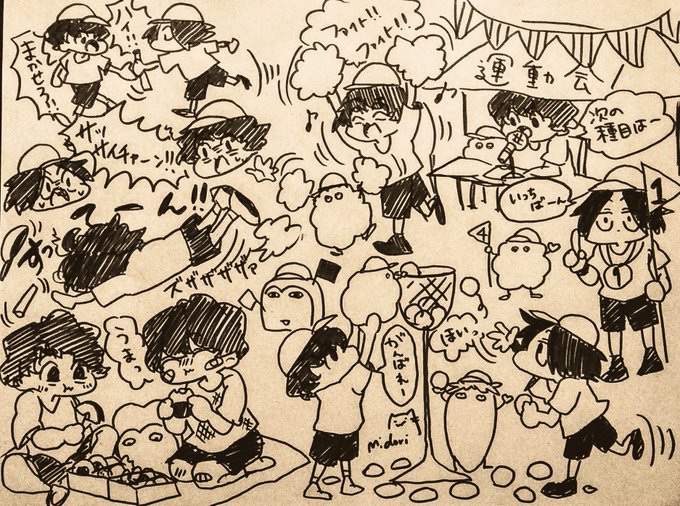 月末恒例、ちぎったカレンダー裏に落書き。 【運動会】