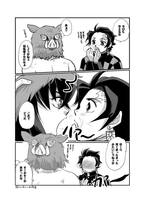 あのシーン💕炭伊フィルター超強め(私にはこう見える) なんなら「かわいい」も「ふふ」も🐗が重なってだと思ってる🥰