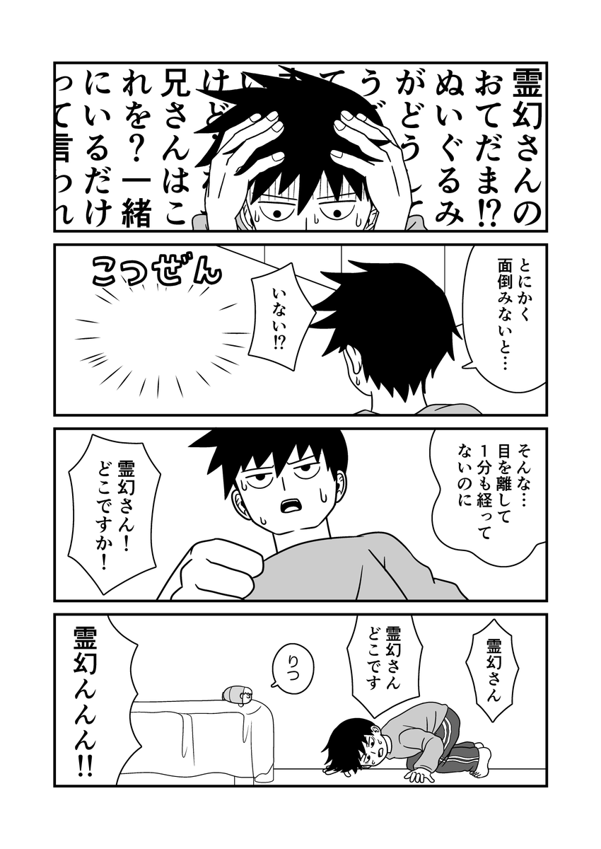 3/19 OH24 律霊新刊サンプルです。 律とししょだまが一緒に過ごすお話。サンプルにはいませんが霊幻も出てきます。 B5 全18P 200円