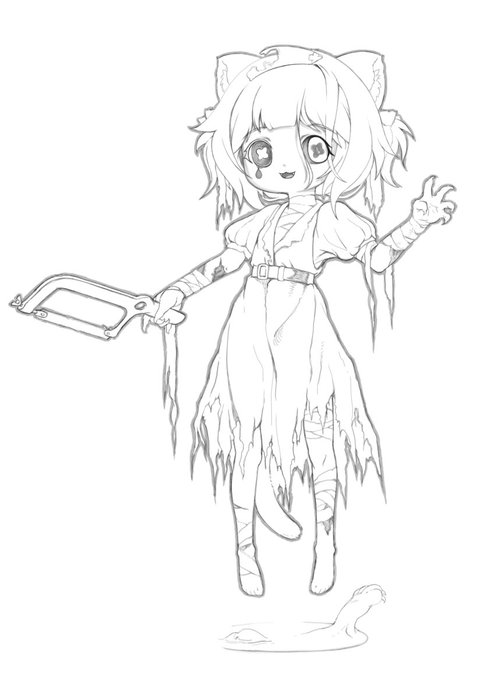#ひよのじゆうちょう dbd ナース仕様 天日ひよ もう誰も逃がさない… ((((((・ω・)っ━■ ザシュ! 線画でーす、着色苦手なのでモノクロで仕上げるか悩み中 ソロライブ決定!おめでとうございます°˖✧◝(⁰▿⁰)◜✧˖°