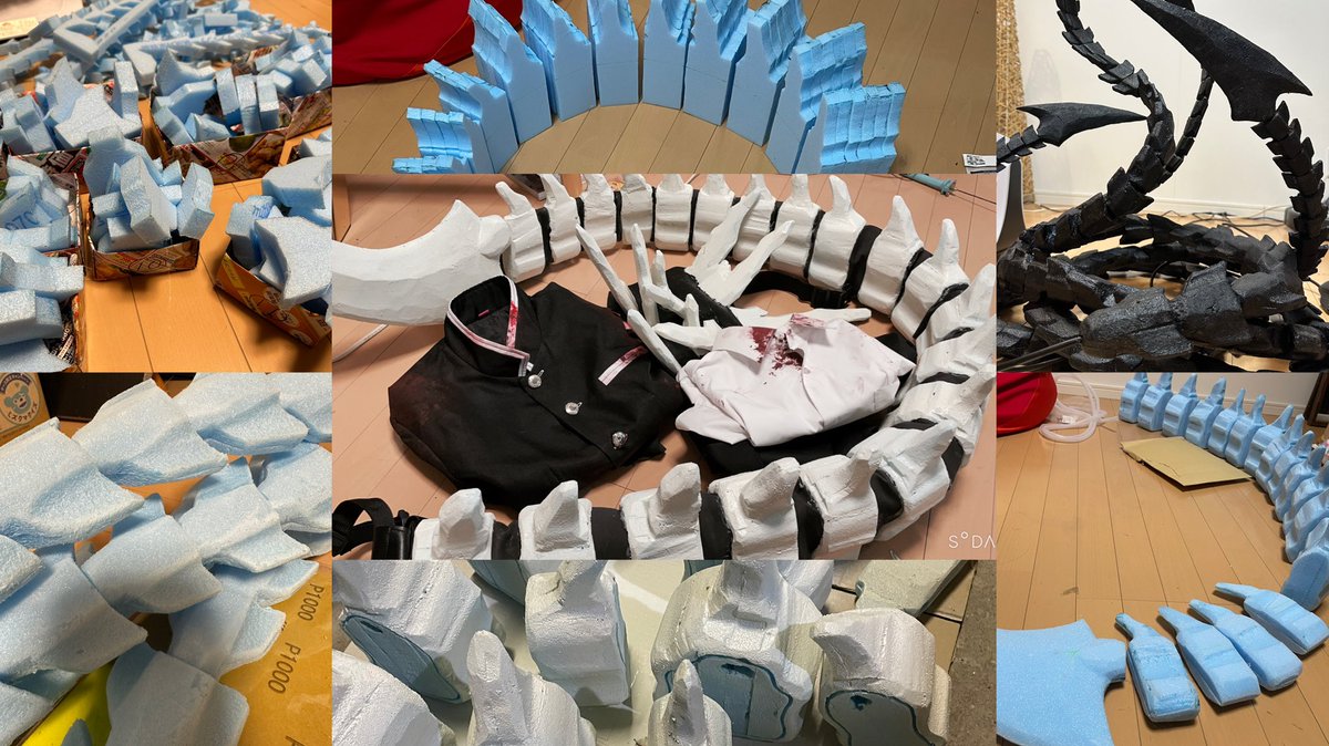 鬼化🎴の衣装&造形なんとか形になりましたのでまとめました。 各パーツは約2m程、重力にどんだけ逆らえるかが課題でした。 一応ですが自立可能。完全自立目指します💪 尻尾はちゃんとオケツから生えてるよ☺️ 血糊に長さ規制でイベントには一切出せない衣装😭 #MIDORIのお裁縫 #鬼滅の刃コスプレ