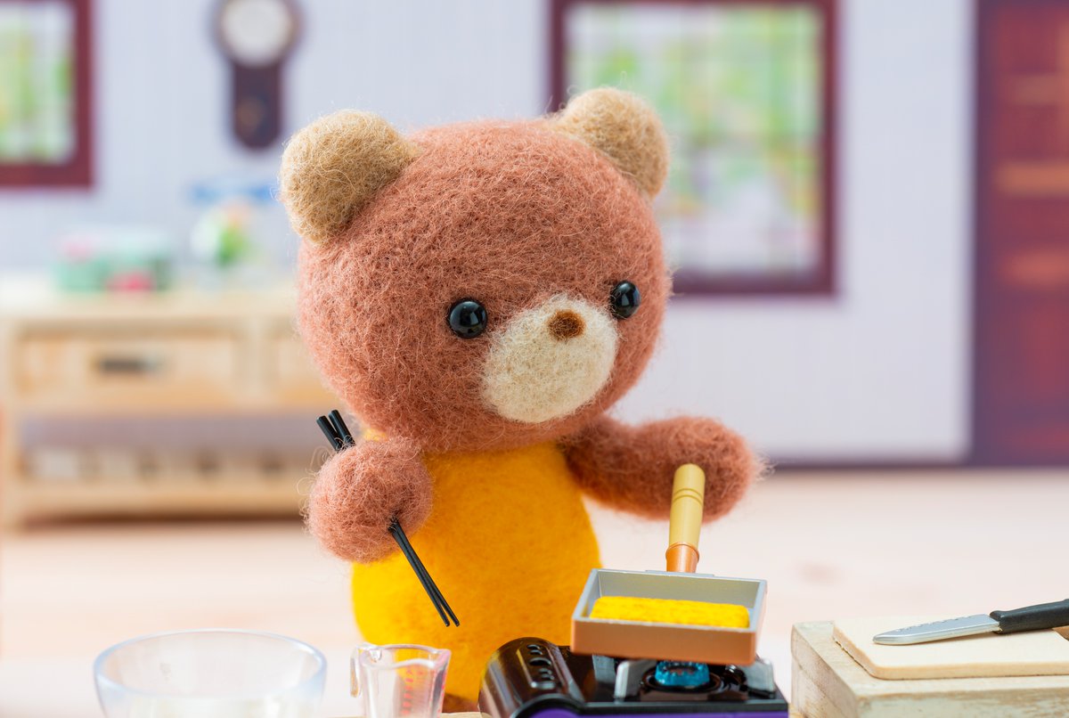 11 102 🌥おはようございます🌥 東京の空はくもっています 急に涼しくなりましたね あつあつのたまご焼きにチャレンジ🥚 #羊毛フェルト #KUMAKKO 21/10/12 08:06