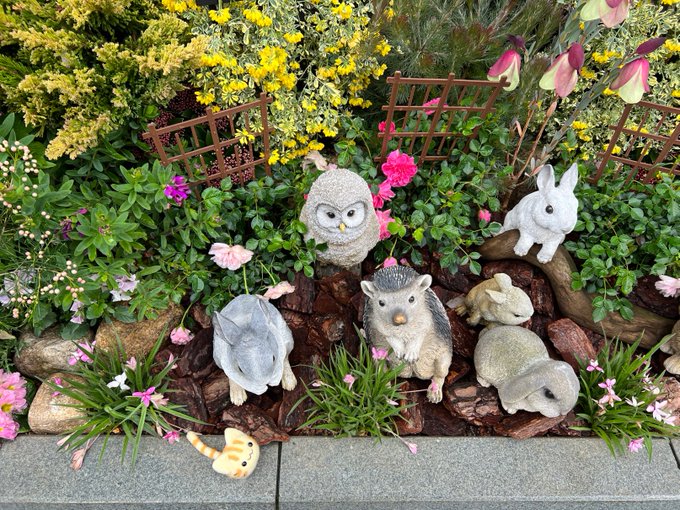 🌤おはようございます 東京はあいにくの曇り空ですが いつもの散歩道も 花壇がきれいです🐱 #羊毛フェルト #needlefelting