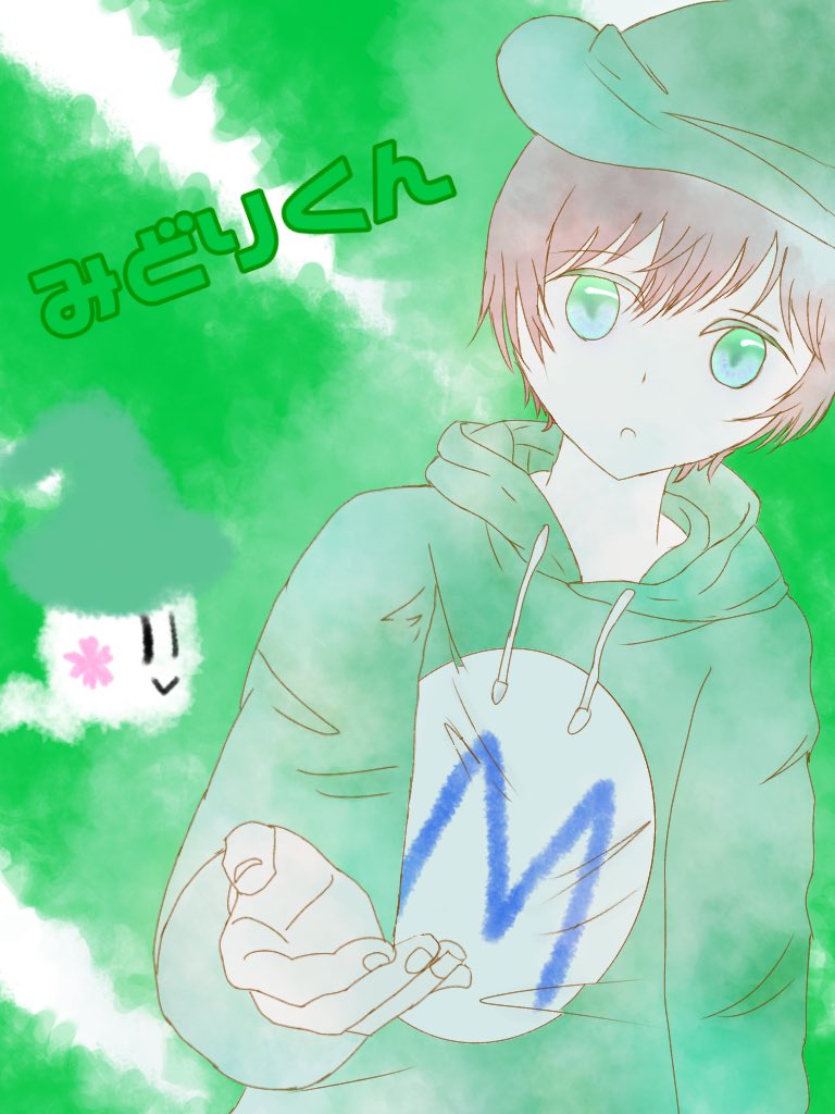 #緑色さんご自由にどうぞ みどりくんを前回のらっでぃ同様水彩ペンで描きました! 絵が下手なのは赦してください 追記:ここおかしいだろ!とか言うのありましたら教えてください_○/|_ 土下座