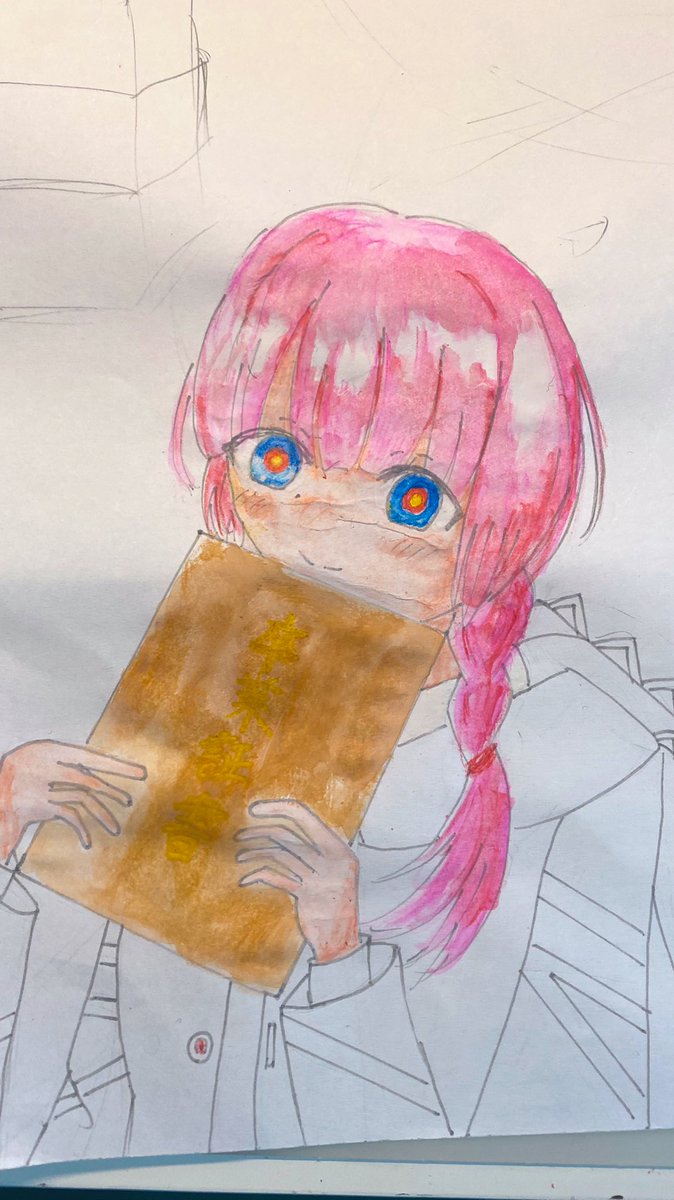 2 16 諦め 紙を薄いのでやったらしわしっわになったから気をつけよう……(泣 花譜ちゃんです、誰がなんと言おうとも この先はデジタルで仕上げます() #花譜美術部 22/03/24 18:41