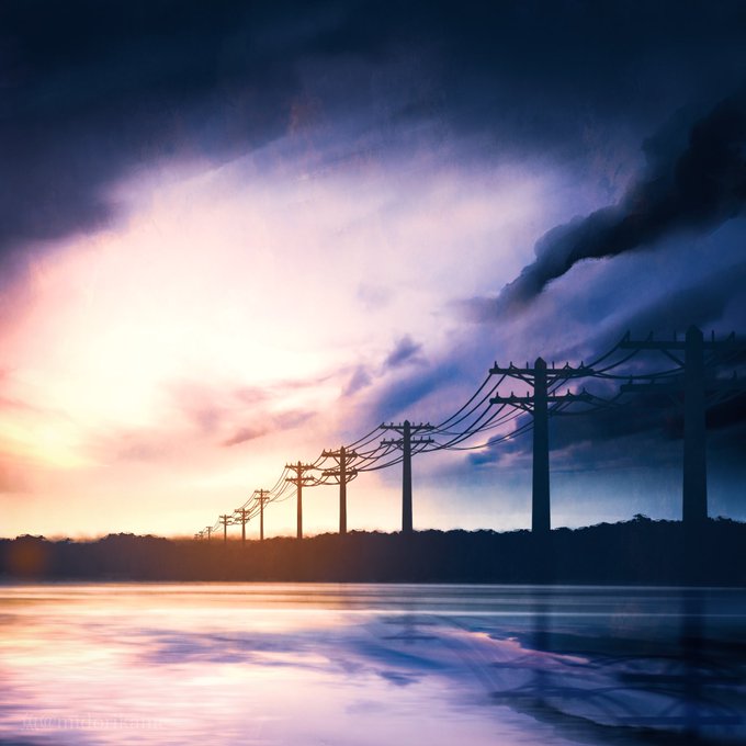 化石樹の湿地 #illustration #イラスト syuera氏@syuera610 との合作です いただいたラフに着彩。相変わらずドラマチック! ありがとうございました⸜(* ॑꒳ ॑* )⸝