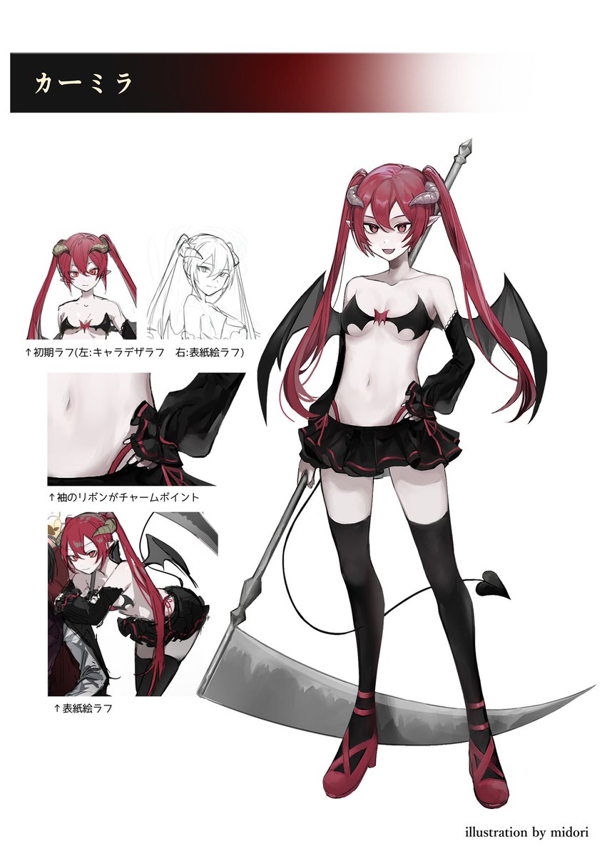 4 20 カーミラの立ち絵を描かせていただきました! 左にはカーミラの完成までのラフ等を並べました。 22/05/03 09:39