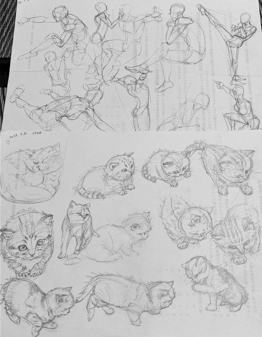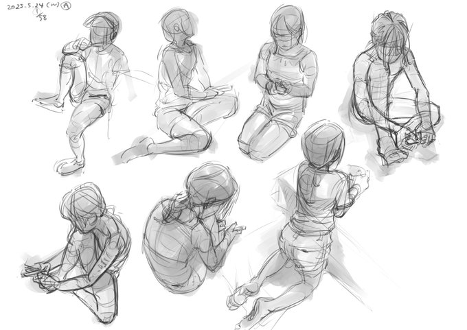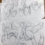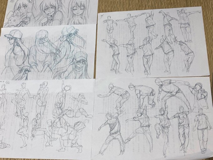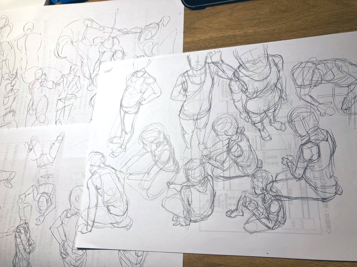 #クロッキー100日チャレンジ 12日目 GWお絵描きできなかったけど再開!手首のスナップでシャッてする線より、腕使って描く柔らかい線の方が塊を捉えやすい気がするかな?今風の絵柄描いてみたくて模写したけど難しいなー。裏紙無くなるまでクロッキー帳は買わない決意。