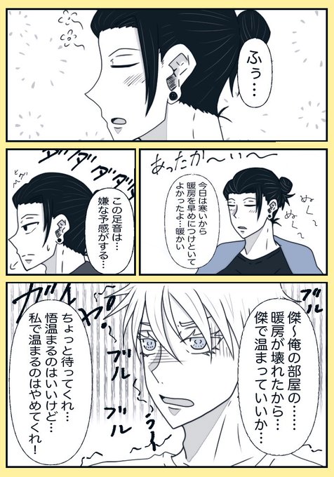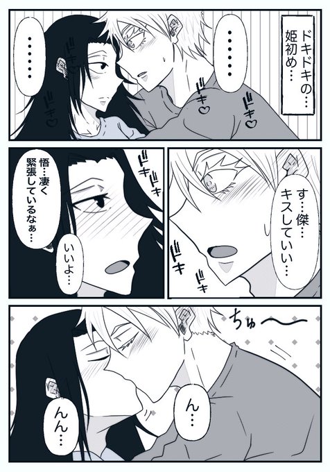 #五夏深夜のワンドロライ一本勝負 タイムオーバー申し訳ないです💦 お題「緊張」です。 五「(ちょっとだけ不意打ちしてやろう…)」 夏「悟それ取ってくれるかい…」 五「なぁ〜傑」 夏「何だい…悟……?」チュ…