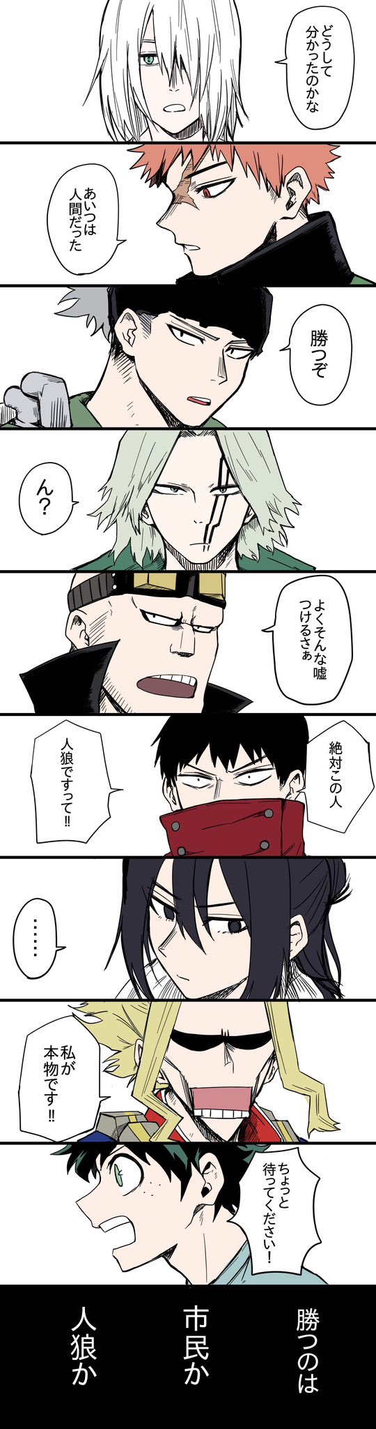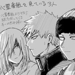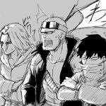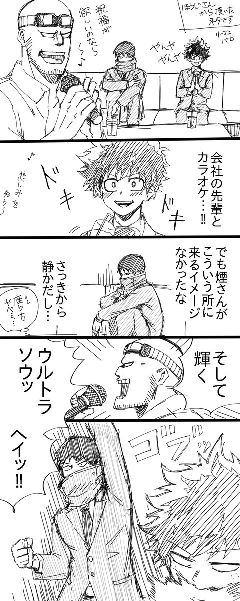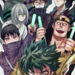 「デクさんのライブ(戦闘)でデクさんに対して自分は理解者だと思って疑わない二代目(後方先輩面)とそれに付き添う三代目と与一、最前でペンラ振りまくる古参の万縄先輩と煙くん、そして黒鞭で連行されている四ノ森さん」です!リクエストありがとうございました!