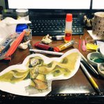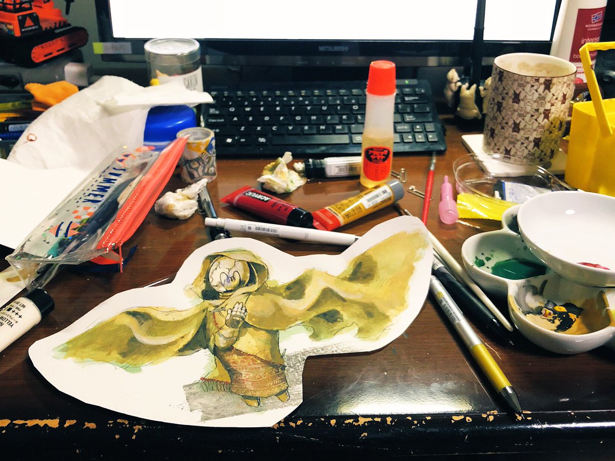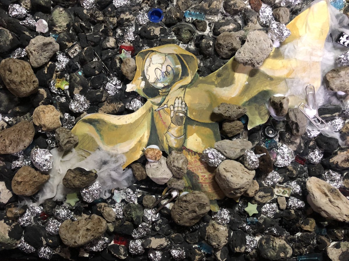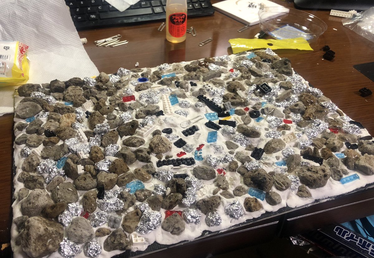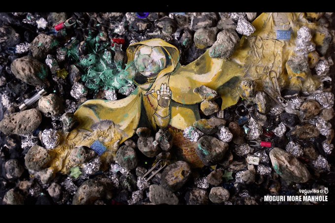 7 15 モグリモアメイキング🚧 楽しくて脳汁が止まりませんでした100均の鉢底石を紙粘土に貼っつけて着色アクリル着彩のイラストを置いて埋めて撮影〜 19/01/24 13:51