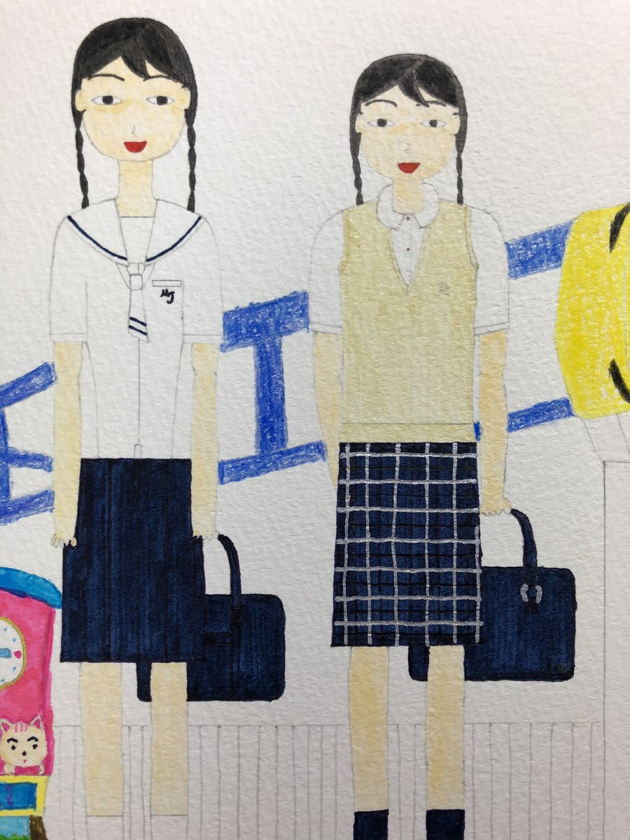 ①9年前に描いた ②5年前に描いた ③①のスタンスで最近描き直した #画力変化ビフォーアフター #絵描きさんと繋がりたい #イラスト好きさんと繋がりたい #絵描きさんと繋がたい #日本女子体育大学 #二階堂高校 #JWCPE #小野学園女子 #トキワ松学園 #夏服 #学校制服