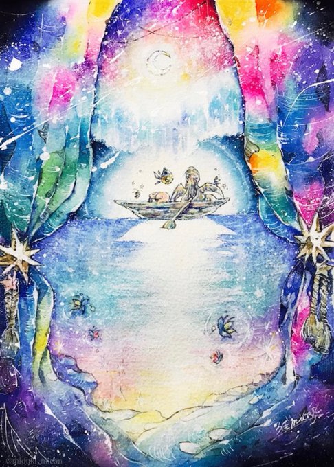 #クリエイターさんの夜っぽい作品が見たい 夜になったら 舟を漕ぎ出し 星空シアターを観に行きましょう🌙*゚