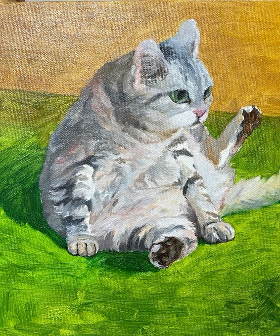 6 33 ヨガプニ🎵🐈 #猫 #cat #油絵 #イラスト #油絵イラスト #油絵作品 #猫イラスト #ねこイラスト 21/05/04 17:42