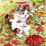 5 40 🍄😑 #猫 #レトロ #ブィンテージ #猫イラスト #イラスト #水彩イラスト #水彩画 #水彩 #イラストレーション #動物イラスト #キノコ 21/08/01 11:15