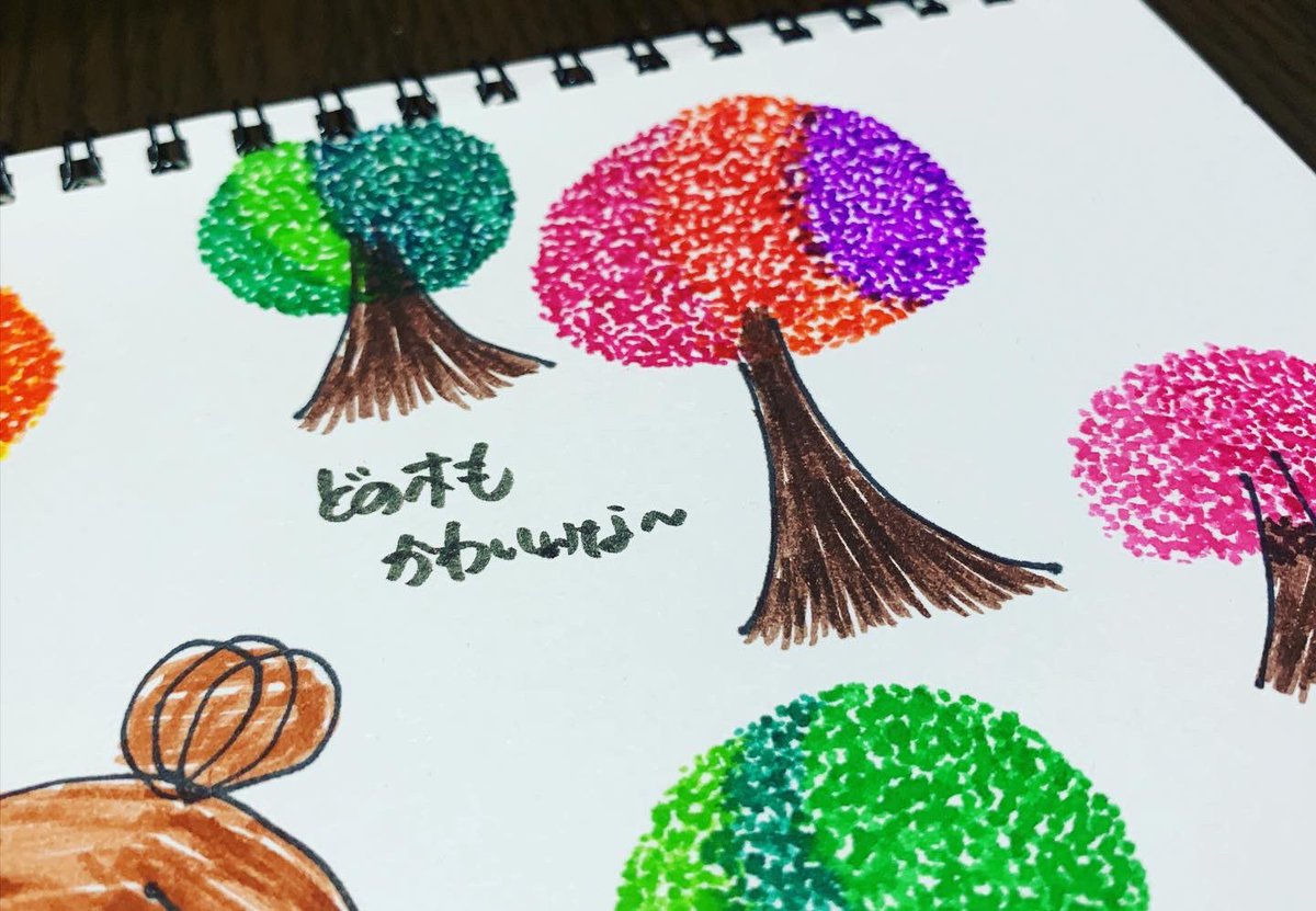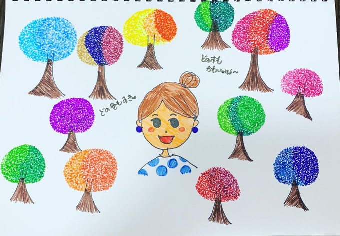 イラスト 『どんな木、どんな色が好き?』 点で表現する #アート #イラスト #ちょこっとお絵描き