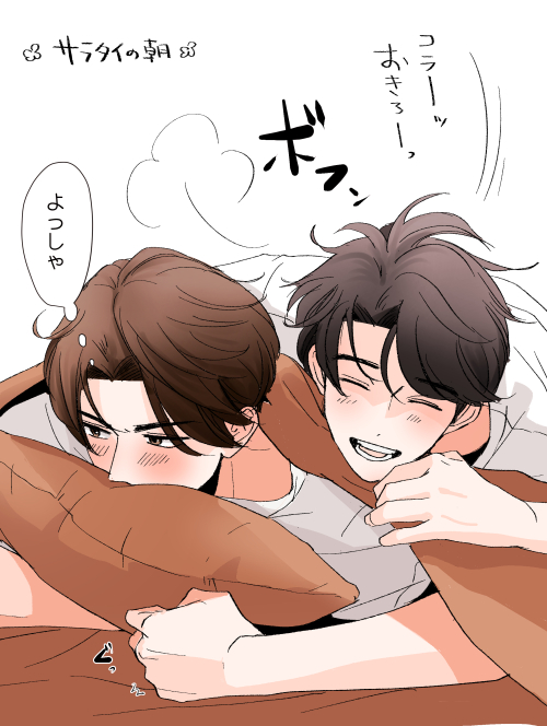 50 429 今日はサラタイちゃんの色んな朝を妄想していました☺️朝って超無防備だから楽しい、寝ぼけシチュもいいし寝たふりもいいしお腹すいてもお互いの体温と甘さに負けて布団から出られなくて腹鳴らしたりするのも可愛いでしょ・・・(かわいい☺️) 22/07/31 23:33