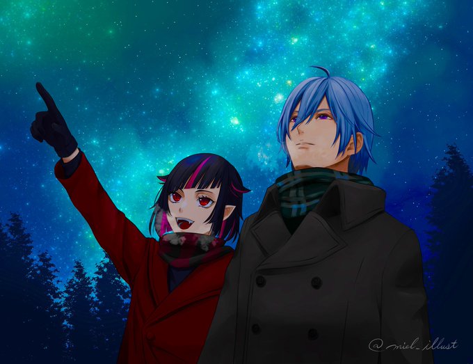 74 311 #絵を彩度100にすると超派手 一度ボツにしちゃった天体観測イラスト、せっかくだから供養😌🙏 23/01/13 21:19