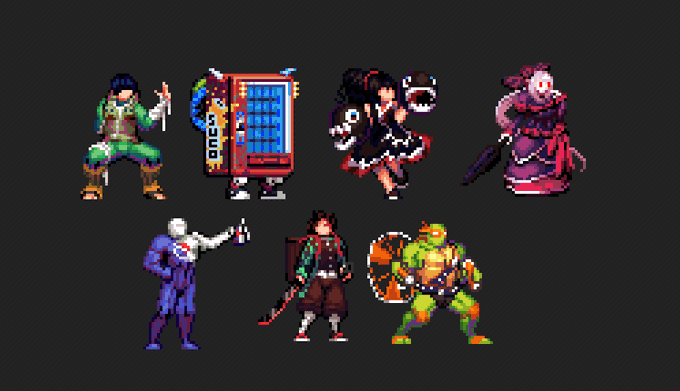 i was listing to donkey kong country musics,and i got the ''amazing'' idea of studing some of the sprites...and thas the results.... soo..i was thinking to make all the sprites and try to put the MieugaDumbymode on the game,but have a lot of sprites😂🤣 #pixelart#ドット絵