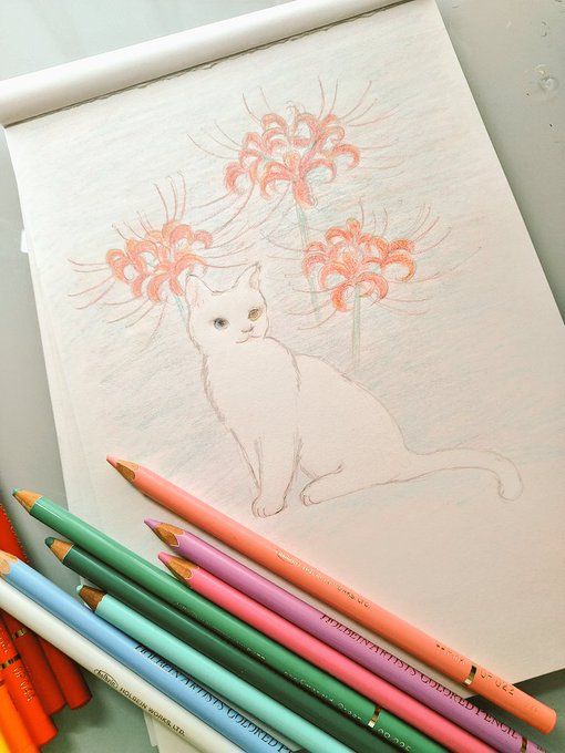 数日前に、 昔飼ってた猫ちゃんが夢に出てきましたよ。 白くてオッドアイの猫ちゃん。 ツンデレでした(*`^´)にゃ お彼岸だったからかなぁ🐱 #絵描きさんと繋がりたい #猫好きさんと繫がりたい #彼岸花