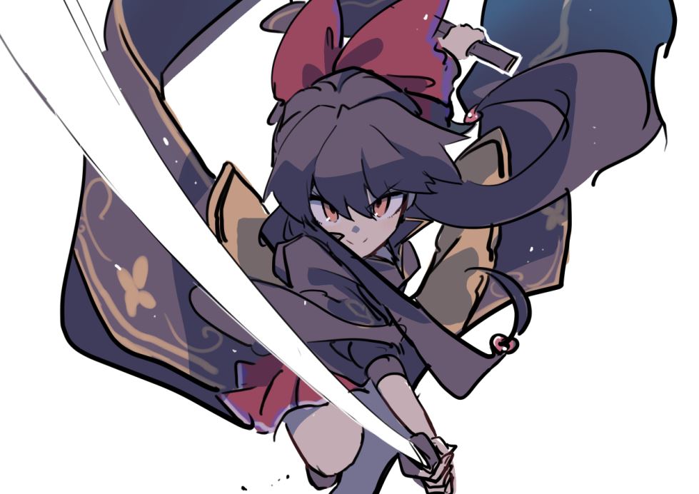 ちーを思い出すために描いたやつの全身版 後ろの布は見栄え重視でバタつきさせたい病でごわす