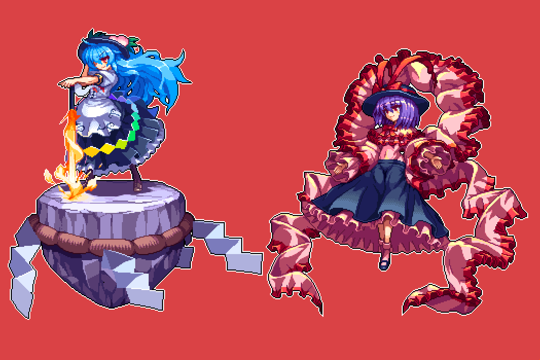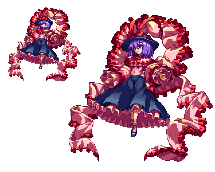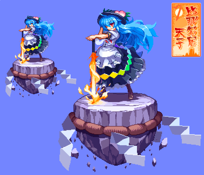 11月19日なので衣玖さんのドット絵です、アウトライン加えたりちょっと加工した天子ver1.10と並べたのもペタリ migelhososi.tumblr.com/post/153377612…