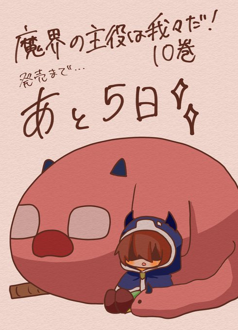 ✨魔界の主役は我々だ!10巻 発売まであと5日✨ ついにボンベくんの使い魔がお披露目!? こいつはブタなのか、それともフラミンゴなのか? ボンベくんも使い魔も非常にかわいいので買うしかないな!!!! (こちらはファンによるただのカウントダウンです) #wrwrdFA #魔界の主役は我々だ