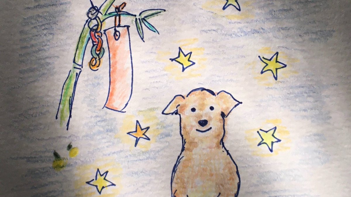 七夕ですね~🎋 今夜も雲か雨にさえぎられそうなので、大きな星を描いてみました🌟🌟🌟 どんな願いにしようかな #イラスト #色鉛筆 #お絵かき #保護犬 #雑種犬 #ペットショップに行く前に #rescuedog #adoptdontshop #drawing #dogsoftwitter #illustration