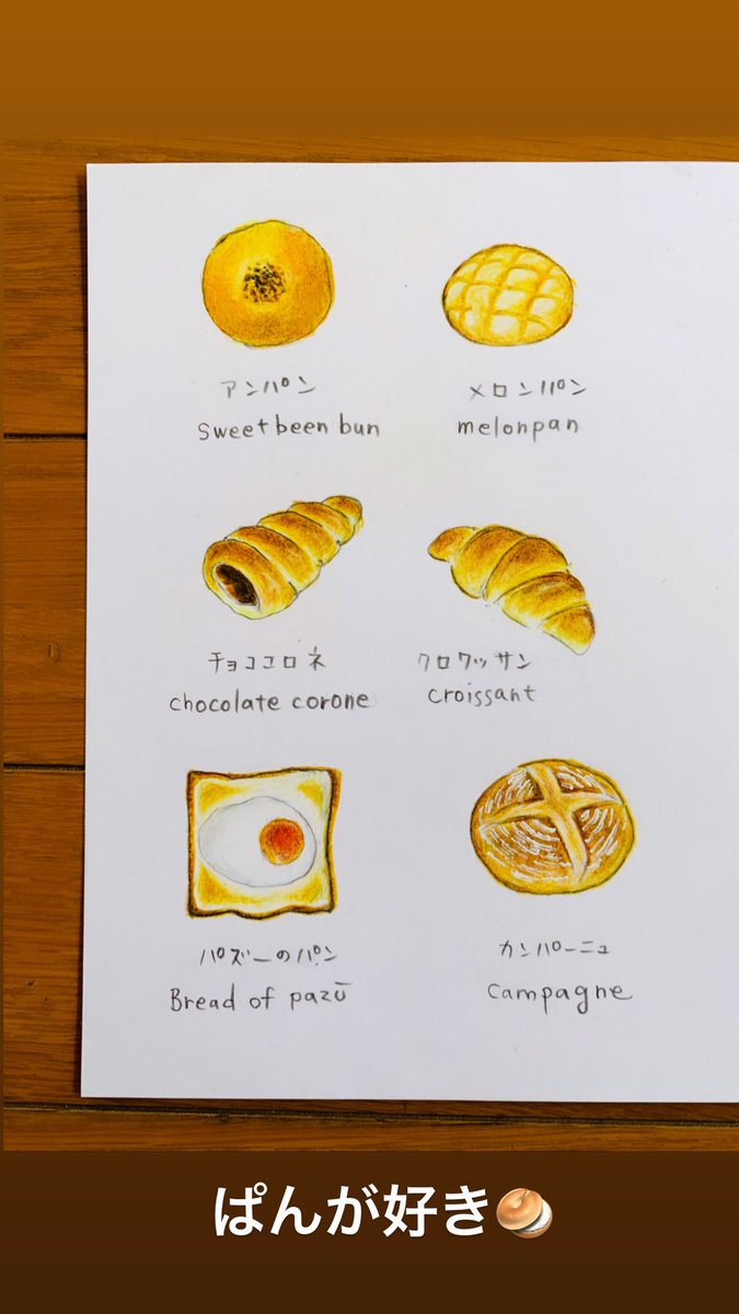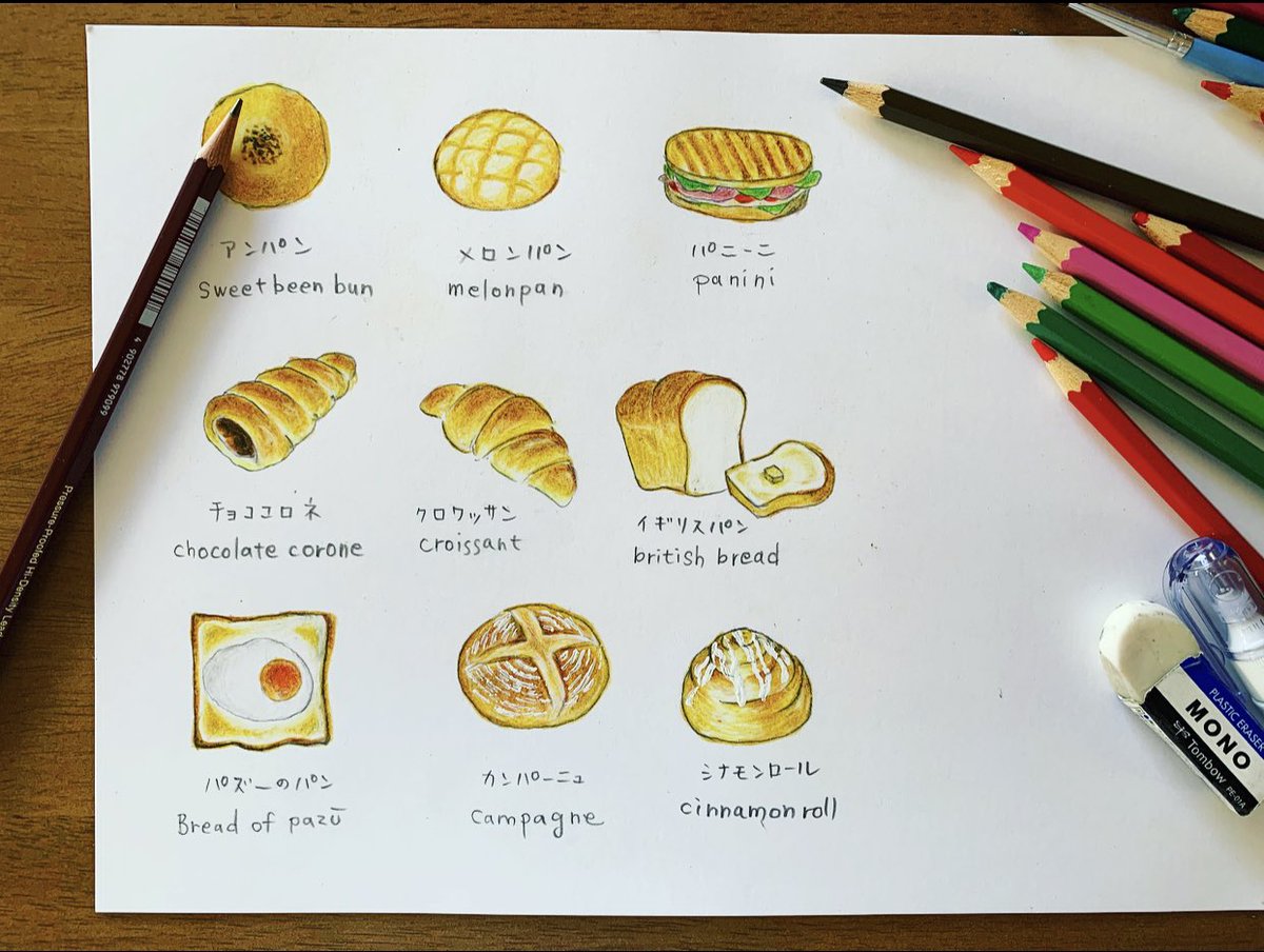 #パンの記念日 #色鉛筆画 昨日がパンの日なんて知らなかった.. 1日遅れでなんとか