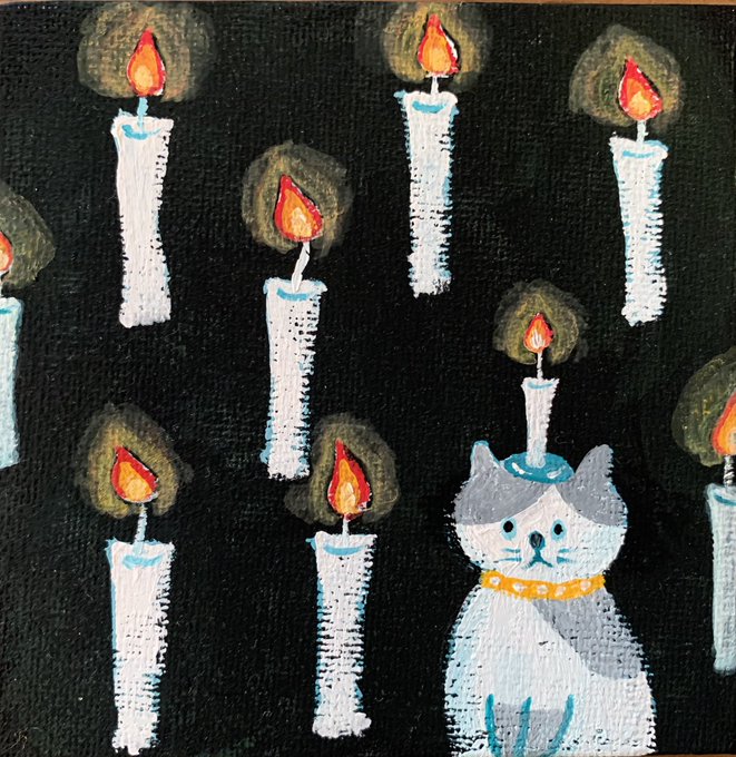 ローソクとネコ #絵画 #アクリルガッシュ #ねこ #絵が好き #絵を描くのが好き