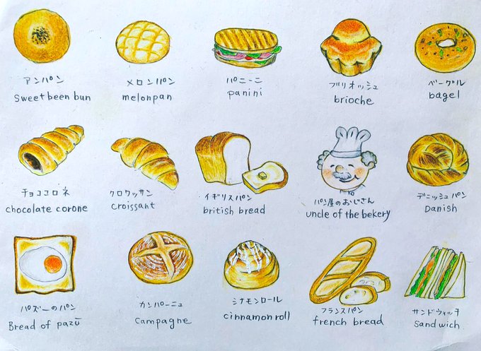 7 147 #パンの記念日 #色鉛筆画 昨日がパンの日なんて知らなかった.. 1日遅れでなんとか 22/04/13 08:13