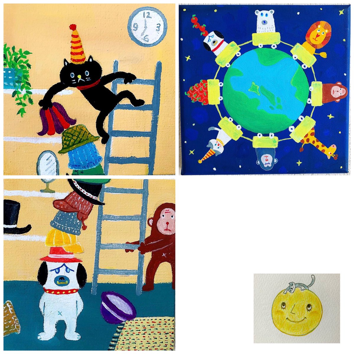 カルタみたいになったw #今月描いた絵を晒そう #落書き #キャンパスにも描いてるよ