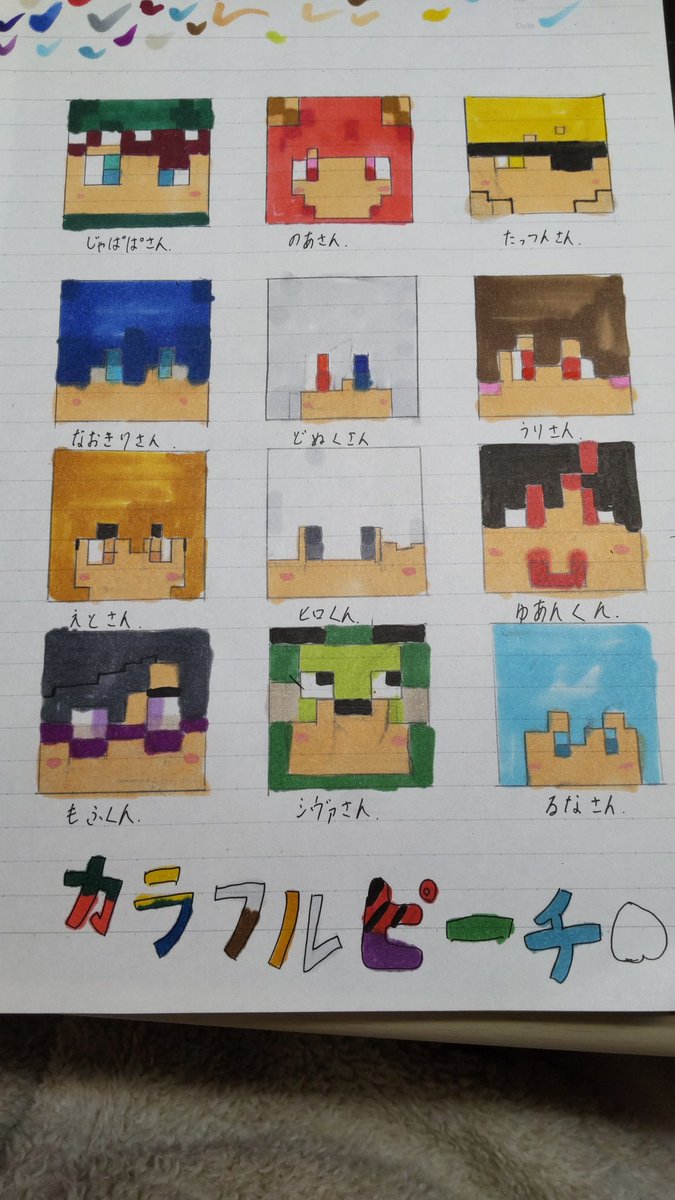 からピチメンバー全員書いてみました!下手くそ…でも前よりは上手くかけたと思った‼️ カラフルピーチのみんなに届いて欲しい…(。ー人ー。) #からぴち #からぴち素材