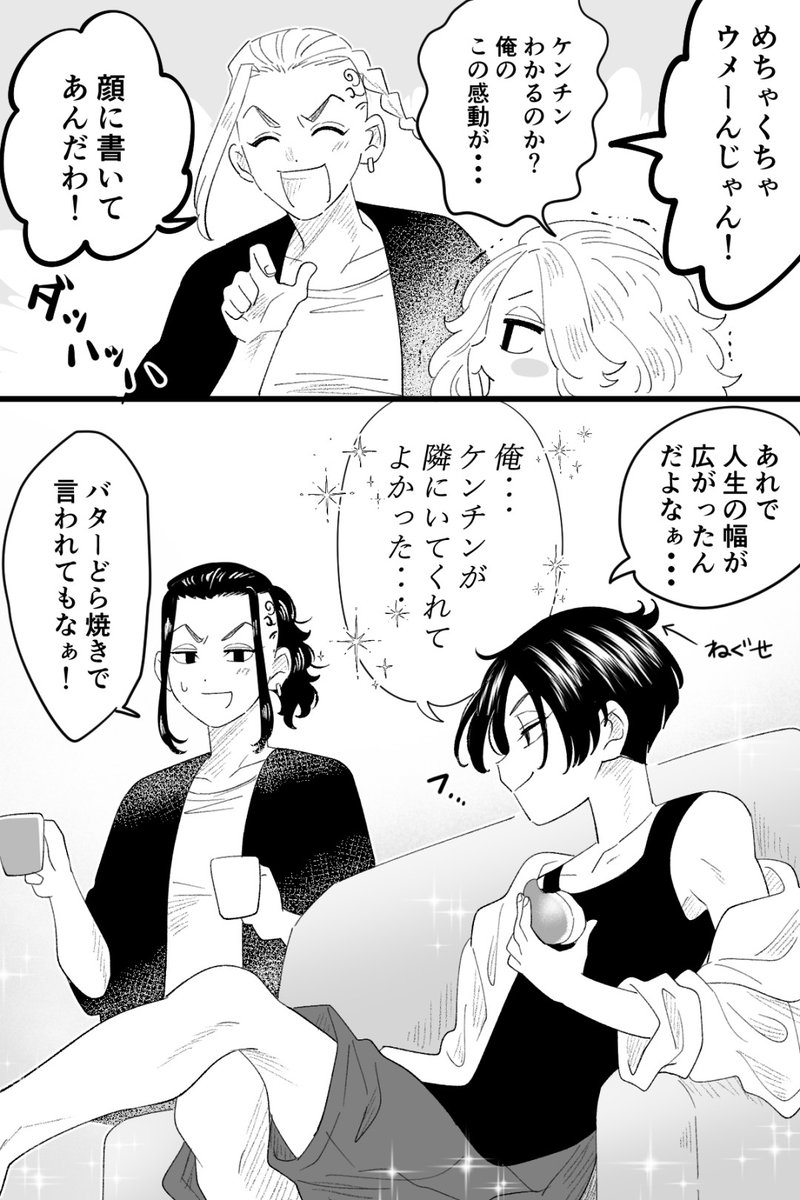 髪結び始めのマイキーと職人のケンチンです