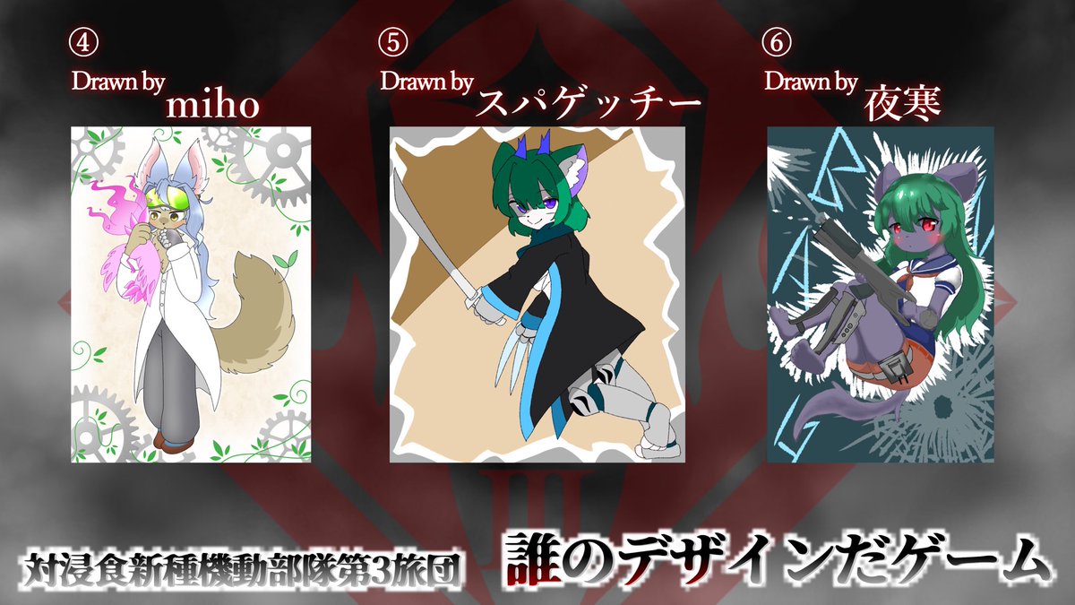 #ディザスコード 16GBさん(@16GB1105)主催のタイシン第3旅団誰デザに参加させて頂きました! 私は④番の子のイラストを担当しました! さて、私のデザインした子はどれでしょうか? このツイート4枚目の解答シート又はリプ欄に付随しているアンケートで解答よろしくお願いします!