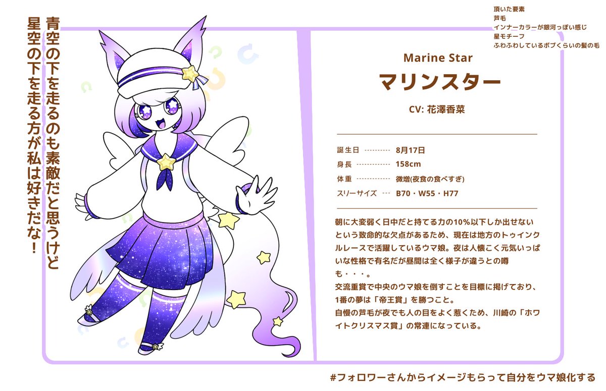 #フォロワーさんからイメージもらって自分をウマ娘化する 頂いた要素に自分の性癖をひたすらブチ込んだら夜に駆けるウマ娘ちゃんになりました! 要素を下さった方ありがとうございました!