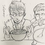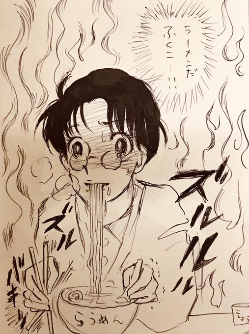 湯気でメガネくもっちゃうの、 察して頂ければ幸いです。 #ぷく絵 #まんぷく