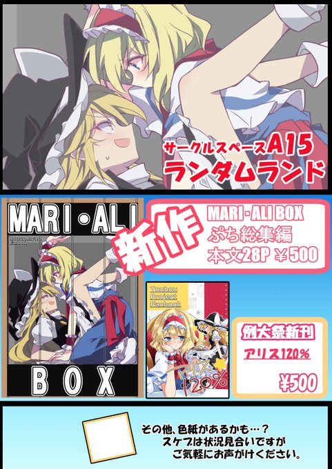 【名華祭・お品書き】A15 ランダムランド 新作ぷち総集編と例大祭で完売してしまった新刊の2種類(用意できれば色紙)でお待ちしております(*'ω'*)✨ぷち総集編の収録作品はツリーを参照にしてください。