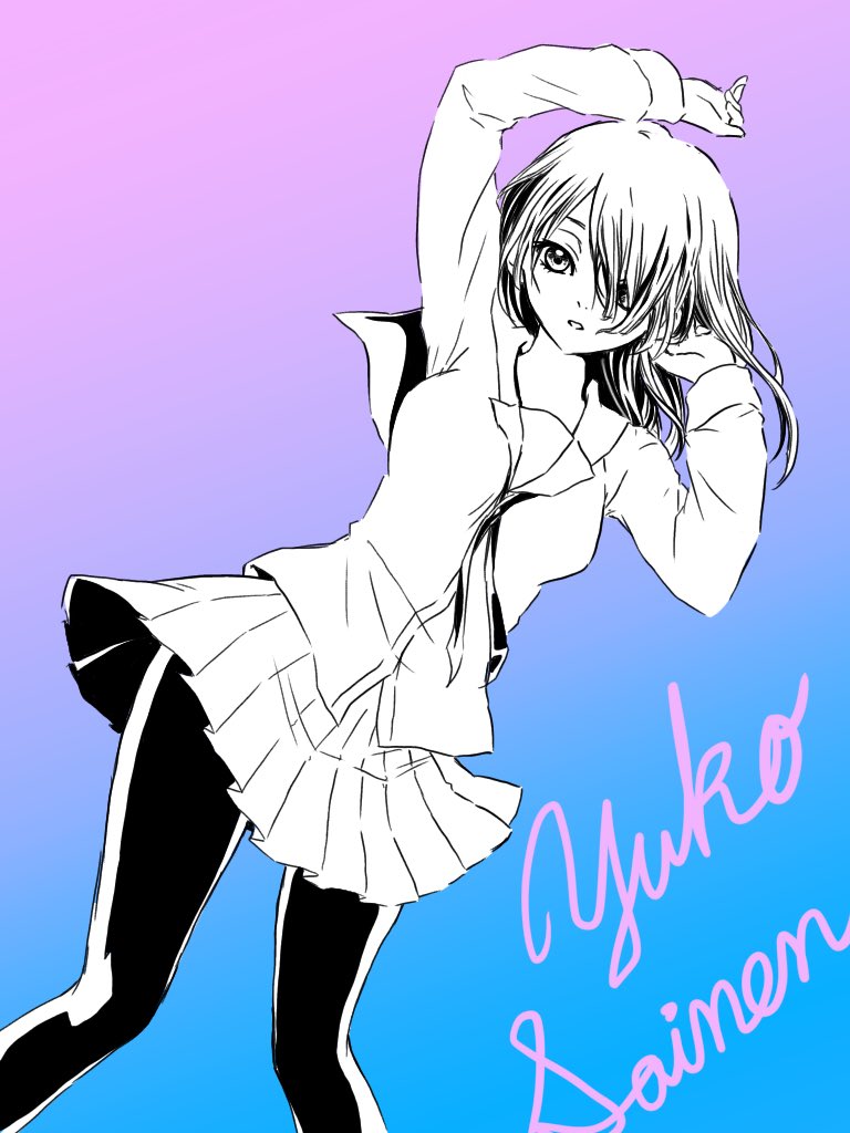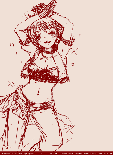 7 15 吉岡沙紀ちゃんのつもりなんだけど謎ポーズのせいで特徴的な髪の毛が隠れた #tegaki_dt 19/04/07 01:08