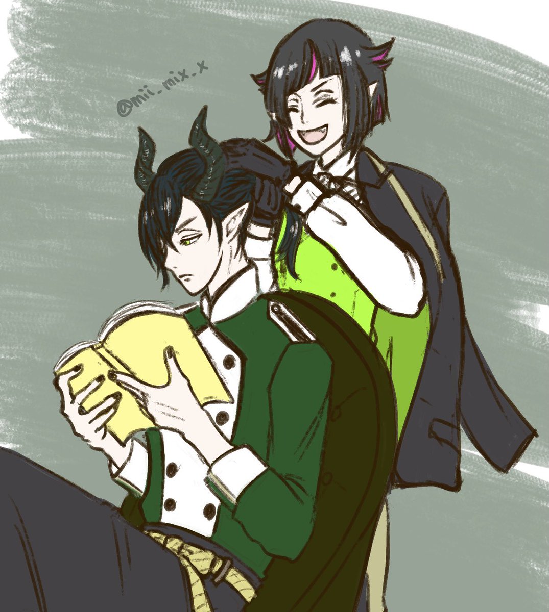 お久しぶりです いつまでも正月気分なヘッダーをどうにか変更すべく、子どもの春休みでぐったりしてる中なんとか描きました にっこリーチ どっかにリーチ兄弟が落ちてないかなーと思いながら日々過ごしています(末期) #ツイステファンアート #ジェイド・リーチ #フロイド・リーチ