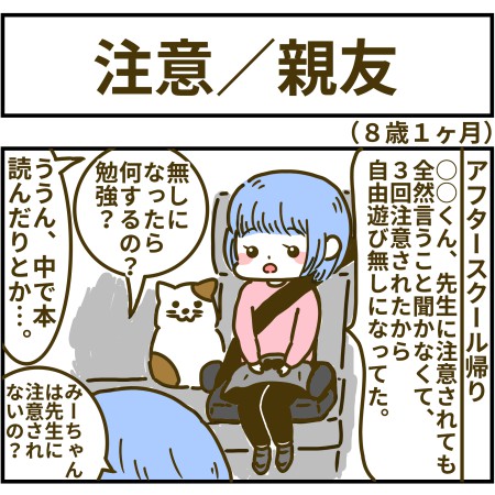 ブログを更新しました。 「125 注意/親友」 自信満々マンな娘。 ameblo.jp/mi-tyan-kosoda… #育児漫画 #育児絵日記 #コミックエッセイ #漫画 #4コマ漫画 #8歳 #女の子ママ #5歳 #男の子ママ #親友