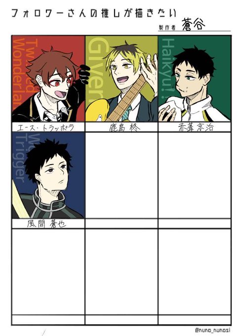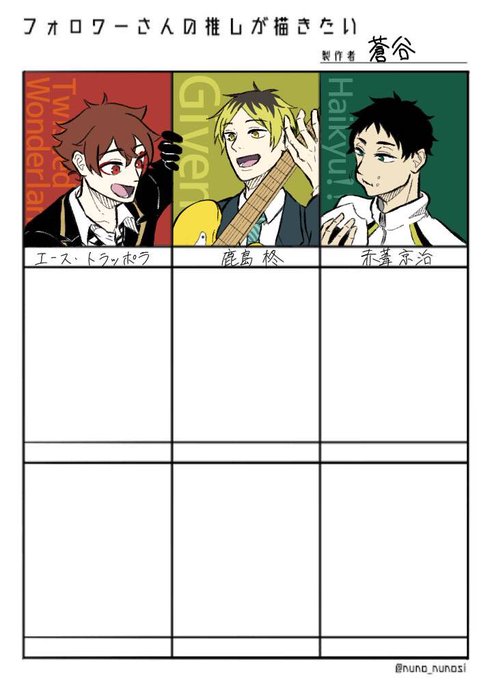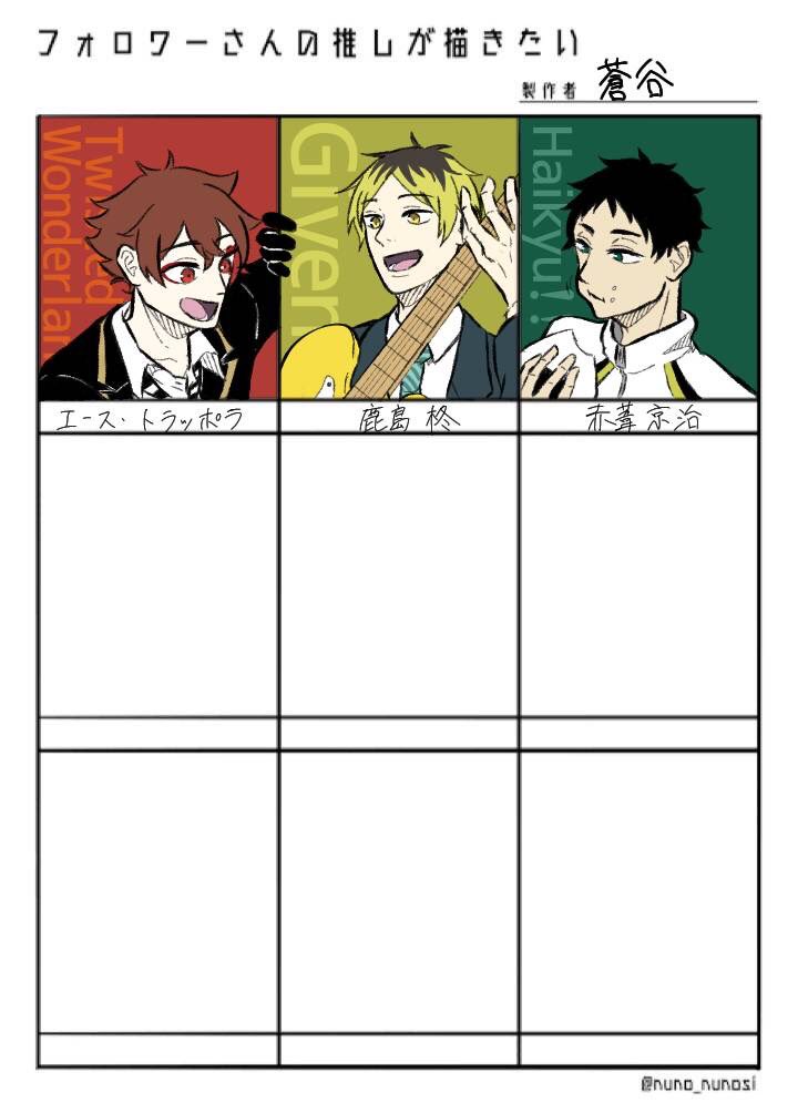 #ハイキュー絵描きさんと繋がりたい #ハイキュー好きと繋がりたい 久しぶりにHQでお友達募集します〜 赤葦最推しです!ふざけたものばかり描いてます 腐イラ・腐ツイは鍵垢に載っけてるのでそちらもぜひ🙇♀️(地雷があるかもしれないのでツイフィ必読です) ♻️中心に❤️も気になった方はお迎えします!