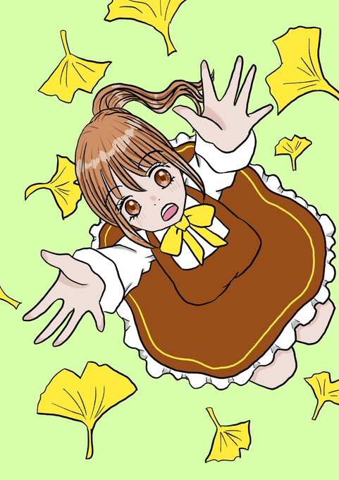 イチョウと女の子 #イラスト #デジタル