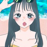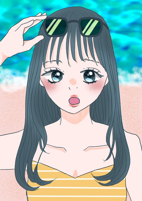 0 11 海と女の子🏖 #デジタル #イラスト 22/08/09 00:24